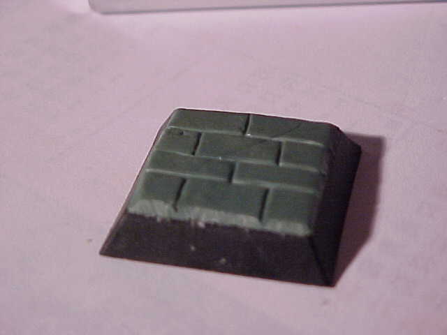 Take a moist sculpting tool and carefully score gentle lines in the Greenstuff. These will be guidelines for the Brickwork, so decide how big the blocks will be and positioning and so on.